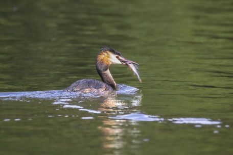 Entlang der Seen, können wir Haubentaucher, Schwäne, Gänse, evtl. Eisvogel und Reiher fotografieren. Schon ab Juli sind Haubentaucher, Schwäne etc.  mit Ihren Jungen rund um den See unterwegs. Je größer z. B. die Haubentaucher Jungen sind, umso mehr wollen die gefüttert werden. Ein absolutes Spektakel, wie die Eltern Fische fangen damit die Jungen satt werden.