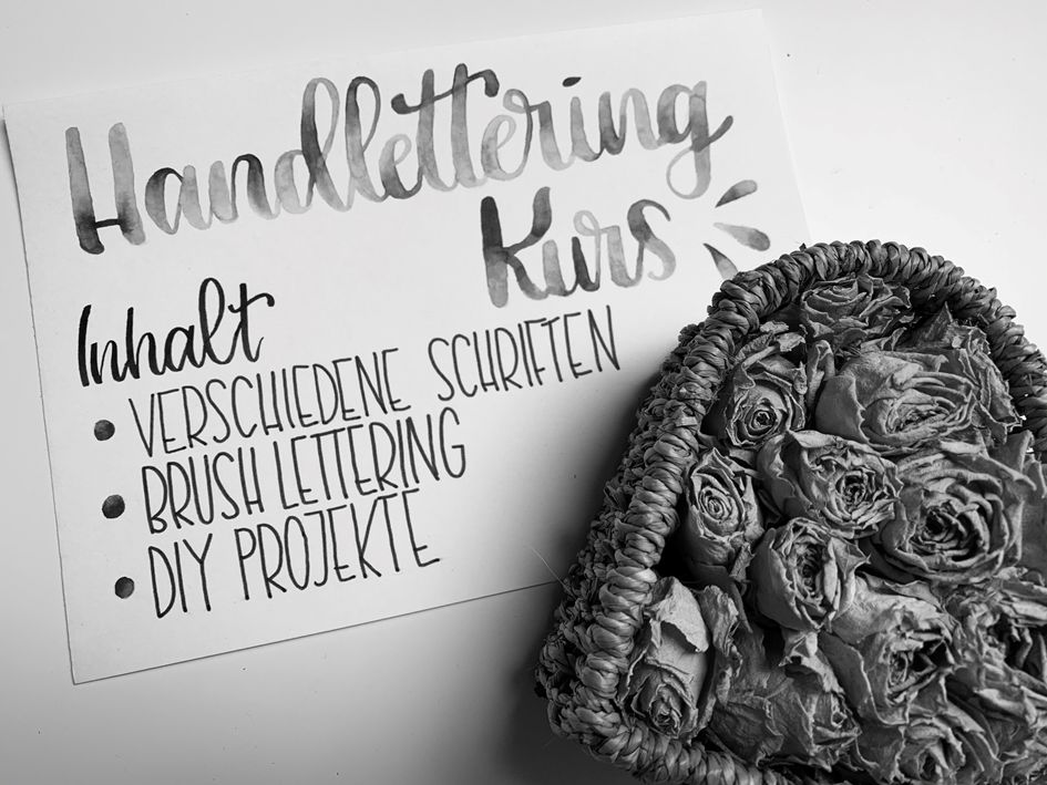 Zeichenkunst, kunstvolles Schreiben, Schönschrift, Beschriftung oder einfach die Kunst des Buchstabenzeichnens - all das ist Lettering. Gemeinsam üben wir an zwei Abenden verschiedene Handlettering- und Brushlettering-Schriften. Die geübten Schriften nutzen wir dann für kleine DIY-Projekte wie z.B. Lesezeichen, Geschenkanhänger, Karten u.v.m.